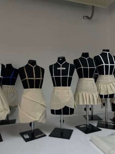 The Draping Studio provides mannequins and professional draping equipment to help students explore three-dimensional garment construction. It encourages creative experimentation with fabric, silhouette development, and couture techniques.