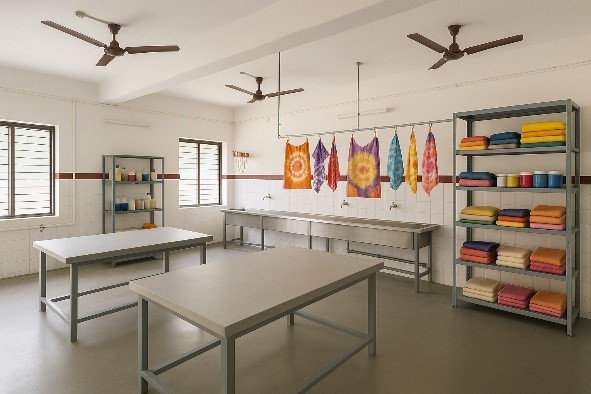 The Textile Lab supports hands-on learning in fabric study, surface design, dyeing, printing, and textile experimentation. Students gain practical knowledge of fiber properties, fabric behavior, and sustainable textile practices.